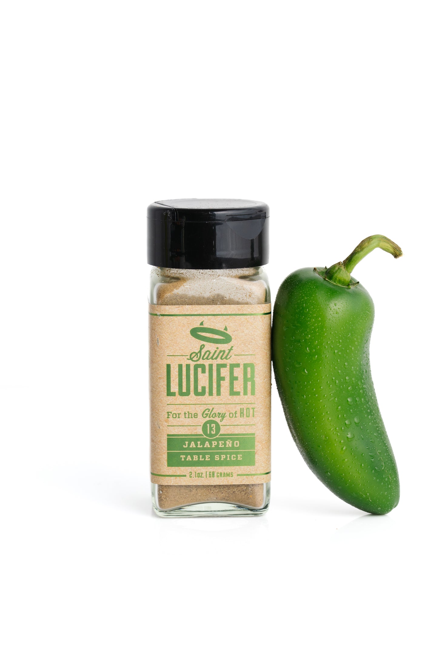 Pass the salt, pass the pepper, and then pass the Saint Lucifer Jalapeño Table Spice. Once you start shaking it, you will wonder how you ever cooked without it.